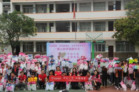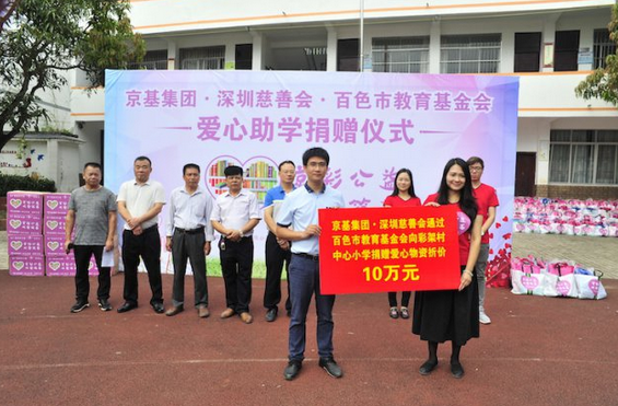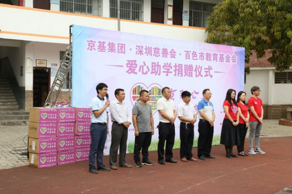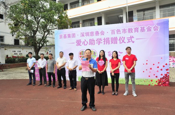 捐赠仪式上,京基集团品牌管理中心副总经理张晓月致辞表示,京基集团 1994 年在深圳成立,以房地产开发起家,与深圳共成长,现已发展成为一家八大产业多元化发展的综合性集团公司。在企业发展壮大的同时,京基集团始终不忘自身的社会责任。百色市是深圳重点对口帮扶对象之一。作为深圳本土知名企业,京基集团积极响应号召,以爱心助学为切入点,发起 " 京彩公益 大爱筑基 " 慈善捐赠活动,切实为山区里的孩子们做点实事。
