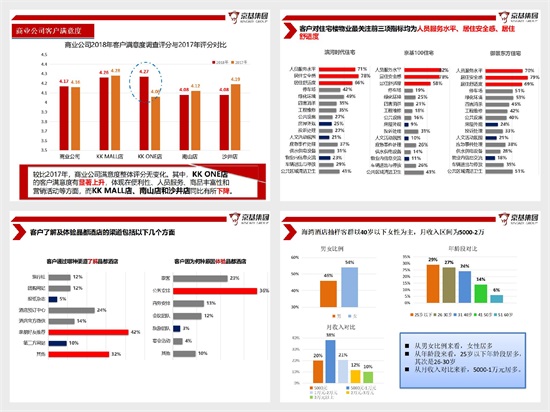 随后,集团领导及各下属公司领导对本次客户满意度调查分析的结果进行了发言,剖析了此次调查的主要影响因素,并提出相关问题的解决措施与未来的工作方向。商业公司副总裁张志斐首先感谢集团经营管理中心组织的本次调查工作并认可存在的客观真实性问题,他说,客户满意度报告客观反映了商业公司顾客服务和商户服务的状况,与目前各店的经营管理情况相匹配,从商户满意度调查结果来看,KK ONE店相对去年有较大提升,这也是与整个利润和销售状况相符合,而南山店有很大幅度下滑,主要问题在于品牌影响推广、品类丰富等方面;从顾客满意度调查结果来看,客户对于停车场、洗手间、儿童洗手盆等问题意见比较凸显。未来,针对四个购物中心商户和顾客所反馈的问题,拟定整改计划时间表予以落实整改,争取在2019年取得更大的进步。
