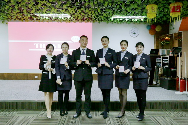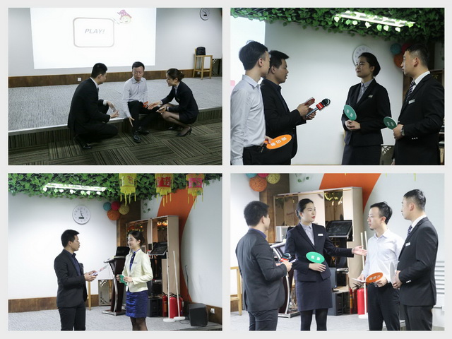 在谈到如何应对和处理突发舆情这部分内容时,杨经理安排了客户投诉、媒体采访等6个日常工作场景的实操演练,邀请现场的礼宾、客服以及安保同事加入,让他们假设在这几种场景中从本职工作角度出发来应对处理,大家参与的积极性非常高,现场气氛也被几位“临时演员”的倾情表演给带动起来。
