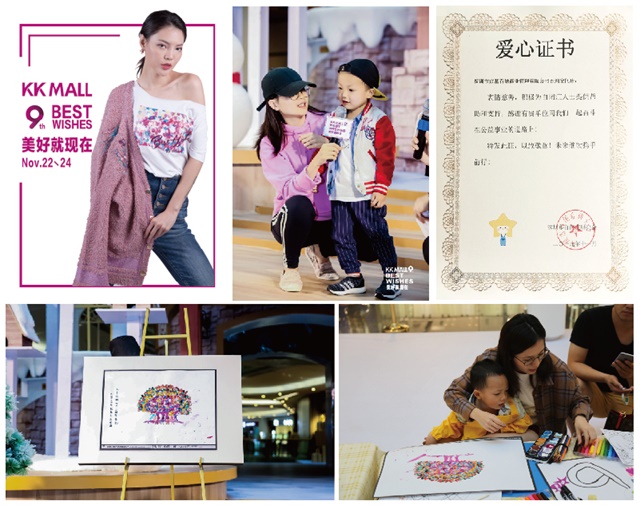 会员携手同行心愿T-Shirt传递九彩祝福 KK MALL9周年以“BEST WISHES,美好就现在”贯穿主题,希望能在如此快节奏的都市生活中为消费者传递享受当下的生活态度。我们相信,美好一直藏在生活里。在9周年来临之际,KK MALL邀请会员亲子家庭共同举办“Hey,T-shirt”原创设计大赛。一等奖获奖作品来自一名4岁孩童,他以九彩大树为创想,与家人一同用手指印下对未来的期待与祝福。为进行美好传递,KK MALL将此富有爱与希望的“九彩树”印制成心愿T-Shirt,送给会员朋友及品牌伙伴,为会员打造专属于“我和KK MALL”的九周年仪式感,感谢各方一路的陪伴与支持。同时,KK MALL也打破常规的捐赠模式,以更细腻的方式,将代表着美好向往的“九彩树”定制卫衣送给自闭症公益组织,在这个冬天,把美好和温暖分享给更多的人。