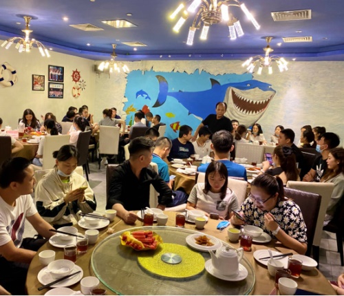 观影结束之后,大家齐聚餐厅。在享用丰盛的晚餐同时也在积极的交流观后感,互相激励,增加了大家对物业工作的信心。