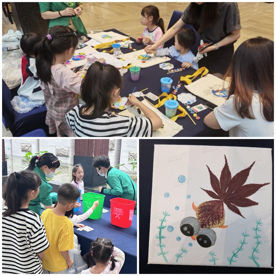 与此同时,京基海湾酒店还为入住的小客人定制了世界地球日主题亲子游戏:桌边趣味环保问答互动、垃圾分类大挑战、丙烯彩绘帆布袋、创艺叶贴画,通过趣味游戏在小客人心中种下低碳环保的种子。
